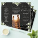 This elegant wedding trifold program features floral greenery on a black background. Designed by Thisisnotme©