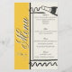 This sleek minimalist design is elegant and perfect! The clean lines make the day all about you while showcasing class and attention-to-detail. The front showcases script calligraphy text, apart from the word "menu" the text is fully customizable. Other tiny details apart from the light and dark color block style are the sweet little hand drawn details. The wine bottle, and bow on the front. If you want to change the word "Menu", reach out and let me know what you'd like. This design has space for all the basics, AND you have space to add more if you need it. The front is beautifully framed and the back has beautiful pin stripes and a tiny frame where you can add the initials of your couple, along with a sweet hand-drawn style strawberry.
