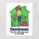 Este folheto de 2 lados, zany e colorido é a maneira perfeita de promover sua carpintaria, construção, serviço de mão cheia. Sua trabalho de arte brilhante e única é espirituosa e completamente encantadora e certamente adicionada a geladeiras em todos os lugares. Possui uma casa verde com um homem de trabalho em macacos segurando um martelo e uma caixa de ferramentas. Uma maneira perfeita de promover seu próprio negócio e fazer um presente perfeito para alguém que você talvez conheça que quer expandir seu negócio ou ganhar dinheiro extra.