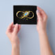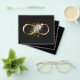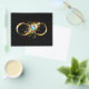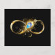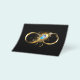 Símbolo Dourado e brilhante do infinito, decorado com pena de joalharia de pavão com turquesa sobre fundo preto.