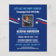 Convite de angariação de fundos para comício de lançamento de campanha política com fita vermelha e branca patriótica, estrelas e espaço para foto do candidato em fundo azul. Todos os elementos de design e campos de texto podem ser redimensionados para espaço e estilo. Ou basta adicionar sua própria redação para criar um folheto, convite ou anúncio finalizado a um preço acessível. NOTA: Esses folhetos de valor são vendidos a granel e NÃO VEM COM ENVELOPES. Tamanho 21,59 x 27,94 cm cabe em envelopes padrão #10, outros tamanhos cabem em envelopes padrão A6 que podem ser comprados separadamente.