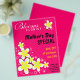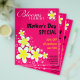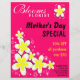 O Frangipani floresce - o design ensolarado de Marte do © FRFL100. O costume bonito, bonito imprimiu insectos do florista com um amarelo e as flores brancas do Frangipani do Plumeria projetam contra um fúcsia ou um fundo do rosa quente. Personalize-o adicionando seu nome da empresa e o outro texto a ele.