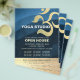 Yoga Malhação Studio / Instrutor de Meditação / Treinador Pessoal / Treinador de Vida / Healer / Mestre de Reiki / Modelo de Folheto de Massagem Aberta - Símbolo de Om de Folha de Ouro Faux Moderno em Fundo do Padrão de Onda Azul Escuro.