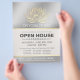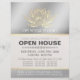 Instrutor de Meditação do Yoga Studio / Treinador de Vida / Healer / Mestre de Reiki / Modelo de Panfleto de Massagem Open House - Lótus de Foil Ouro Faux Moderno e Elegante no Fundo do Damasco Floral de Prata.