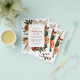 Este convite de Ação de Graças apresenta uma estrutura cornucópia com texto elegante simples para suas informações. A parte traseira apresenta fundo castanho sólido. Perfeito para convidar convidados a jantar.