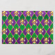 joias, fundo em Mardi Gras de losango roxo e verde, lírios de ouro decorados.