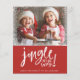Jingle de Natal | Flyer/Carta de Férias com Foto Moderno - A carta econômica apresenta sua bela foto emoldurada com uma borda de neve. "Jingle all the way" também é apresentado em uma fonte manuscrita. A carta é personalizada com "Feliz Natal" editável com o nome da sua família. Esta é uma opção econômica. Se preferir um papel mais grosso, escolha uma das nossas opções de cartas planas ou cartões postais. A carta faz parte de uma coleção.