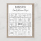 Flyer Jogo Burlap Bingo da Reunião Familiar