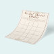 Torne a abertura de presentes ainda mais emocionante com este cartão de jogo de bingo para Chá de Noiva em estilo boho floral. Com elegantes elementos botânicos e tipografia moderna, esta atividade divertida mantém os convidados engajados enquanto marcam os itens que acham que a noiva irá receber. Perfeito para chás de noiva com tema boho ou floral, adiciona risadas e uma competição amigável à celebração, criando momentos memoráveis para todos os presentes.