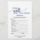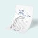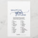 Este jogo de caligrafia simples azul-marinho "o que está no seu bolsa" é perfeito para um chá de noiva elegante. A frente do cartão do jogo apresenta "quão bem você conhece a noiva", e o verso do cartão apresenta "o que está no seu bolsa". O design branco e azul apresenta tipografia rústica chique e um coração romântico encantador. Personalize a frente do cartão com o nome da noiva e a data do chá de noiva.