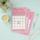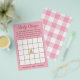 Nesta versão divertida do jogo Bingo, faça seus convidados preencherem os praças com presentes que eles pensam que a futura mãe receberá. À medida que os presentes são abertos, os jogadores marcam quadrados que combinam e o primeiro a receber cinco em fileira ganha o jogo! Design é rosa com uma grelha branca de Bingo. Um urso bonito ocupa o espaço livre no centro do jogo. Personalize o texto abaixo com o nome da futura mãe. A parte de trás do jogo é cor-de-rosa e búfalo branco.