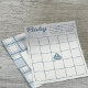 Estes lençóis de bingo são perfeitos para chás de fraldas com um tema náutico. Eles apresentam gráficos náuticos e um esquema de cores azul e creme. No verso está um ponto para adicionar informações personalizadas.