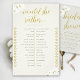 Um panfleto de jogo de chá de panela com um tema "ela iria preferencialmente". Personalize (ou deixe como estão) uma lista de coisas sobre a noiva e depois entregue-as aos seus convidados para dizer o que ela preferiria, para uma atividade divertida para o seu chá de panela. Para um chá de panela com tema das orquídeas brancas, com dois ramos de orquídeas brancas desenhadas à mão, tipografia moderna e caligrafia moderna com florescimentos femininos e elegantes. Chic e moderno, elegante e eterno, esta design (com convites e outros itens) é adorável para uma noiva moderna que ama orquídeas brancas.