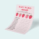 "Adicione um elemento divertido e interativo ao seu chá de fraldas com o nosso 'Jogo de Desenho do Bebê de Morango Rosa e Vermelho'." Apresentando adoráveis designs de morango em cor-de-rosa e vermelho vibrantes, este jogo convida os hóspedes a desembaraçarem palavras relacionadas a bebês para um desafio encantador. Perfeito para entreter convidados e fazer risos, este jogo é um divisor de gelo de excelente e pode ser jogado em qualquer tema de chá de fraldas. Torne a sua celebração memorável com esta encantadora e engajadora atividade!"