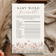 Este jogo nasceu de um rabisco de flores rosa suave e um momento de “e se a gente o tornasse inteligente?”. O elegante jogo de palavras embaralhadas mantém os convidados rindo, adivinhando e correndo contra o tempo — enquanto as delicadas flores do prado adicionam aquele clima sonhador e arejado de bebê em flor à sua mesa de festa.