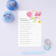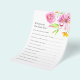 Traga um novo charme de verão para seus jogos de chá de panela com este elegante jogo de perguntas sobre chás de panela florais. Apresentando vibrantes flores cor-de-água rosa, esta carta de trivialidade "Você sabe que a noiva é perfeita para uma comemoração de jardim, casamentos ou um dia ensolarado de caça de soldado." Os convidados adorarão testar o seu conhecimento com esta divertida "Quem conhece a melhor atividade da noiva" — um disjuntor fácil e divertido para jogos de chá de casamento, jantas de ensaio ou brunches de chá de panela. O design de aquarela macia e flores rosa alegres dão um tom quente e convidativo para as suas festividades de verão. Combine com peças de coordenação da coleção "Floral Mimosas e Matrimony" de Victoria Grigaliunas do Do Tell A Belle. Veja o tema do cheio em: https://www.zazzle.com/collections/floral_mimosas_and_matrimony_bridal_shower_themes-119822754151821636 Celebre o amor no cheio bloom—peça o seu jogo de chá de panela floral hoje mesmo!