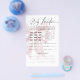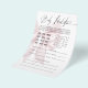 Quem não ama um jogo de adivinhação? Este cartão de previsão de bebê rosa-chic traz estilo e diversão ao seu chá de fraldas. Projetado com um arco cor-de-rosa suave e um roteiro elegante, é a manutenção perfeita! Os convidados podem prever tudo sobre o bebê — nome, sexo, peso e muito mais. Que comece a adivinhar!