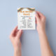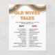 Libere seu filho de flor interior e embarque em uma jornada de sabedoria antiga com o nosso jogo de Chá de fraldas de histórias de esposas velhas! Esta reviravolta num jogo clássico irá transportá-lo de volta à era da paz, do amor e do eterno enquanto você explora histórias fascinantes de velhas esposas relacionadas à gravidez e às predições de bebês. Abraçando o tema vibrante e retrô de seu chá de fraldas, este jogo é adorado com padrões psicodélicos, fontes fotônicas e cores ranhosas que captam o espírito dos anos 60 e 70. É uma maneira distante de engajar seus hóspedes e entretê-los com as crenças caprichosas de dias passados. O Jogo "Groovy Baby" Old Wives apresenta uma coleção de depoimentos baseados em crenças e superstições tradicionais sobre gravidez e bebês. Os convidados serão apresentados com um cartão de jogo e incumbidos de determinar se cada afirmação é verdadeira ou falsa de acordo com contos de esposas antigas. Desde predizer o gênero do bebê até adivinhar se a futura mãe é carregando alta ou baixa, este jogo cobrir uma grande variedade de noções deliciosas e antiquadas. Os cartões de jogo são lindamente projetados para criar uma atmosfera de nostalgia e diversão. As cores vivas, padrões giratórios e fontes retrorativas evocam um sentimento de alegria e entusiasmo enquanto os convidados mergulham no mundo místico dos contos de esposas antigas. O jogo é fácil de jogar e adequado para convidados de todas as idades. Cada convidado pode participar individualmente ou formar equipes, acrescentando um elemento de competição amigável e desencadeando conversas interessantes à medida que eles compartilham seus pensamentos e crenças. Incluídos no conjunto de jogos, há cartões de jogo suficientes para cada convidado, assim como uma chave de resposta para uma classificação fácil. As cartas são feitas de materiais de alta qualidade, garantindo durabilidade e permitindo que você aprecie as memórias deste chá de fraldas de entalhe muito depois que a festa terminou. Então, preparem-se para sintonizar a sabedoria do passado com o nosso Jogo de Chás de fraldas de "Groovy Baby" Old Wives Tales. É uma adição fantástica à sua celebração retrortemática, fornecendo risos, nostalgia e uma experiência memorável para todos os envolvidos. Que as boas vibrações fluam enquanto você explora as crenças peculiares do velho e celebra a chegada iminente do seu pequeno bebê ranzinza!