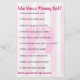 Pegadas De Bebê Rosa Pareciam Jogos De chá de fraldas. O lado um é o Chá de fraldas Bingo e o lado dois é, "Quem conhece melhor a mamãe?"