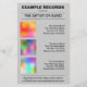 Um modelo de folheto adequado para o lançamento de um novo álbum. Nome da gravadora no topo (frente e verso) junto com o nome do artista/banda. Imagem principal da capa do álbum (adequada para uma imagem quadrada) no centro com detalhes abaixo. Detalhes de disponibilidade na parte inferior. O lado reverso tem os mesmos detalhes de cabeçalho e rodapé junto com três miniaturas de álbuns com detalhes ao lado. Isso pode ser usado para outros álbuns do mesmo artista/banda ou usado para promover álbuns de outros artistas/bandas. Este folheto é personalizável de muitas maneiras, todos os elementos são personalizáveis. A cor do fundo e as cores da fonte também podem ser alteradas.