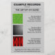 Um modelo de folheto adequado para um novo lançamento do álbum. Registre o nome da empresa no topo (frente e verso) junto com o nome do artista/banda. Imagem principal do cobrir do álbum (adequado para uma imagem quadrada) no centro com os detalhes abaixo. Detalhes de disponibilidade na parte inferior. O lado inverso tem os mesmos detalhes de cabeçalho e rodapé junto com três miniaturas de álbuns com detalhes ao lado. Esta opção poderia ser utilizada para outros álbuns pelo mesmo artista/banda ou utilizada para promover álbuns por outros artistas/bandas. Este folheto é personalizável de muitas maneiras, todos os elementos são personalizáveis. As cores da cor de fundo e da fonte também podem ser alteradas.