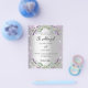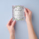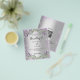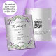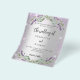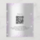 Por favor, note que este convite está no papel de folheto e é muito fino. Os envelopes não estão incluídos. Para convites mais espessos (mesmo design) visite nossa loja. Um convite de casamento moderno e na moda. Um fundo de aparência pura prateada com brilho violeta, faíscas, flores de lavanda, flores e verde de eucalipto. Personalize e adicione seus nomes e detalhes. Voltar: adicione o URL do seu local de casamento para o código QR e um texto.