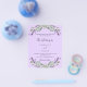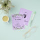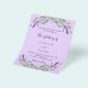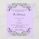 Por favor, note que este convite está no papel de folheto e é muito fino. Os envelopes não estão incluídos. Para convites mais espessos (mesmo design) visite nossa loja. Um fundo violeta decorado com flores de lavanda e verde de eucalipto. Personalize e seus nomes e detalhes. Voltar: adicione seu URL da Web ao seu site de casamento para RSVP e mais detalhes.
