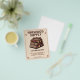 A rustic promotional flyer featuring a stack of split firewood logs and autumn leaves on a cream background in a frame.