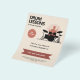 Um folheto publicitário para lições de tambor. A ilustração consiste em uma silhueta de um kit de tambor, um baterista com as mãos destacadas, e um sol vermelho-marrom riscado no fundo.