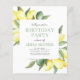 Orçamento Personalizar Lemon Watercolor Elegante e Estilo de Verão de Primavera de Aquarela Moderna Qualquer Convite de aniversário de Idade em fundo branco com sua mensagem e detalhes. Este convite para na moda inclui a paisagem verde de citros de limão limão com tipografia de guiões bonitinha e elegante para a celebração especial de aniversário ou Sweet 16, 1rua, 21ruas, 30, 40º, 50º, 60º, 70, celebrações de Festa de aniversário