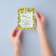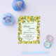 Por favor, note que este convite está no papel de folheto e é muito fino. Os envelopes não estão incluídos. Para convites mais espessos (mesmo design) visite nossa loja. Um fundo verde de cor aquosa. Decorado com limões amarelos e folhagem verde. Personalize e adicione um nome e detalhes da parte. O nome é escrito com um script de estilo manuscrito. Fundo verde.