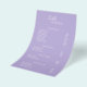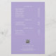 Panfleto de lista de preços roxo / lavanda moderno e profissional com um design simples e minimalista, apresentando seu nome em uma fonte elegante e contemporânea sem serifa. O modelo inclui várias seções divididas para seus serviços em um layout minimalista. O verso contém suas informações de contato e um código QR opcional. Se preferir, o código QR pode ser removido na ferramenta de edição de design.