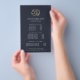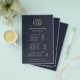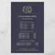 Design de folheto elegante para spas, práticas holísticas de saúde e bem-estar, estúdios de ioga ou terapeutas de massagem mostram seus serviços ou sua lista de preços em letras brancas clássicas em um fundo azul marinho adornado com uma ilustração falsa de flor de lotus de folha de ouro. Inclui três títulos personalizáveis e campos de texto do corpo, e espaço para as informações de contato da sua empresa na parte inferior. Para ajustar o layout, digite seu texto e use a função Personalizar para alterar o posicionamento e os tamanhos de fonte.