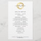 Um círculo pintado orgânico em dourado metálico falso torna-se um logotipo luxuoso neste modelo de panfleto personalizável com a adição do seu nome ou nome da empresa em um tratamento de tipo chic. Use esses panfletos para listas de preços, menus de serviços, peças de marketing promocional e muito mais. Todo o texto é totalmente personalizável e o texto pode ser adicionado ao verso também. Arte e design por 1201AM, um estúdio de design de marca boutique. © 1201AM CREATIVE