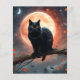 Foto Em Um Ramal De Árvore Renhosa Em Frente A Uma Lua Cheia Com Morcegos Voadores No Fundo É Um Gato Preto Com Olhos Laranja.