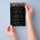 O design elegante do folheto exibe seus serviços, lista de preços ou informações comerciais em letras brancas sobre um fundo preto nítido, cruzado no topo por luzes de corda douradas com efeito bokeh desfocado. Inclui quatro títulos personalizáveis e campos de texto do corpo, e espaço para as informações de contato da sua empresa ao longo da parte inferior. Para ajustar o layout, insira o seu texto e use a função Personalizar para alterar o posicionamento e os tamanhos de fonte.