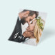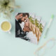 Obrigado Cartões que têm uma foto na frente e atrás. Os cartões de agradecimento contêm uma moderna tipografia cursiva escrita branca e com letras negras, que é elegante, simples e moderna de usar depois de você comemorar um simples dia de casamento minimalista.