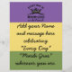 Novos Orleães amam Mardi Gras e você também, então personalize esta design acrescentando "sua cidade" ou "sua cidade" ou "sua vizinhança" ou "sua mensagem" à design de "Todo Dia é Mardi Gras". Eu adicionei algumas áreas e ou mensagens, mas você pode facilmente mudar a cor do tipo e da fonte e o que você quiser dizer. Vista esta design da coroa com as miçangas roxa, verde e dourada na roupa, t-shirts masculinas, camisetas femininas, roupa bebê ou boné na "Terça-feira gorda" e todos os dias você se sente como se tivesse deixado os bons tempos rolar. Também disponível em sacos de tote de canvas para todas as suas miçangas do Mardi Gras, envie cartões ou convites de festas com selos postais personalizados para a sua festa do Mardi Gras, ou dê adesivos, botões, ímãs, chaveiros ou canecas como presentes ou favoritos para festas. Feliz todos os dias, Mardi Gras.