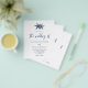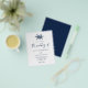 Este convite mínimo moderno para casamento na praia tem um fundo branco com texto azul marinho, dois estrelas-do-mar no topo, e a caligrafia tradicional com script. A parte de trás é marinho azul. Este convite para casamento costeiro é de tamanho menor impresso em papel mais barato, sem um envelope. Se você quiser outra versão do orçamento em um papel ligeiramente melhor, com um envelope que custe um pouco mais, entre em contato comigo através do Zazzle Chat, ou use a opção Transferir para uma "folha de papel simples" 4,5"x 5,6".