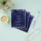 Por favor, note que este convite está no papel de folheto e é muito fino. Os envelopes não estão incluídos. Para convites mais espessos (mesmo design) visite nossa loja. Um fundo azul marinho, decorado com poeira falsa dourada. A cor azul é irregular. Personalize e adicione seus nomes e detalhes.