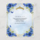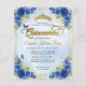 Marinho Botânico Floral Azul Dourado Tiara Crown Sparkle Glitter RSVP Birthday Quinceañera Convite