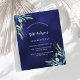 Por favor, note que este convite está no papel de folheto e é muito fino. Os envelopes não estão incluídos. Para convites mais espessos (mesmo design) visite nossa loja. Um fundo azul marinho, decorado com verde. A cor azul é irregular. Personalize e adicione seu nome e detalhes da festa.