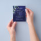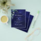 Por favor, note que este convite está no papel de folheto e é muito fino. Os envelopes não estão incluídos. Para convites mais espessos (mesmo design) visite nossa loja. Um convite moderno e na moda para um casamento. Um fundo azul marinho, decorado com verde. A cor azul é irregular. Personalize e adicione seus nomes e detalhes.
