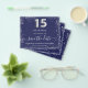 Observe que esta opção Save the date (Salvar a data) está no papel do folheto e muito fina. Os envelopes não estão incluídos. Para salvar o cartão Data (mesmo design) mais espesso, visite nossa loja. Uma garota e uma moda Salvem a data para uma Quinceañera, 15 festa de aniversário. Um fundo azul marinho decorado com pó falso de cinza prateada. Personalize e adicione uma data e nome/idade. O texto: Salvar a Data é gravado com um script de estilo com letra de tendência grande. Número 15 com uma fonte no estilo do balão prateado.