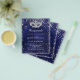 Por favor, note que este convite está no papel de folheto e é muito fino. Os envelopes não estão incluídos. Para convites mais espessos (mesmo design) visite nossa loja. Para um Mascarada elegante, 21ruas (ou qualquer idade) de aniversário. Um fundo azul-marinho de tendência, a cor azul é irregular. Decorado com pó falso prateado brilhante e uma máscara de mascarada. Personalize e adicione um nome, idade e detalhes da festa. O nome é escrito com um script de estilo manuscrito