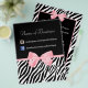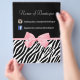 Personalize este folheto de ativação do mercado com uma marca de zebra preto-e-branco e uma fita de rosa claro-menina amarrada em um arco giro, adicionando o nome da sua boutique e informações de contato. Conecte-se com seus clientes direcionando-os para suas páginas de negócios e sites de mídia social. Este folheto publicitário de promocional é perfeito para o marketing de varejo de pequenas empresas. Imagem impressa plana, não arco real.