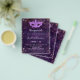 Por favor, note que este convite está no papel de folheto e é muito fino. Os envelopes não estão incluídos. Para convites mais espessos (mesmo design) visite nossa loja. Para um Mascarada elegante, 16, 16 anos. Um padrão de fundo roxo. Decorado com rosa dourado falso poeira brilhante e uma máscara de mascarada. Personalize e adicione um nome, idade e detalhes da festa. O nome é escrito com um script de estilo manuscrito