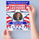 Folheto de modelo da campanha em vermelho, branco e azul com estrelas e listras.