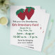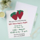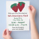 Personalize facilmente estes panfletos de morango com suas informações sobre quando escolher, o nome da sua empresa, horários de colheita e muito mais. Foto desses folhetos é uma bonito pintura de dois morangos maduros, inteiros, com folhas verdes.