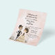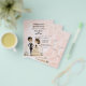 Para os pequenos convites de casamento, escolha este belo convite em papel de folheto. Uma noiva e noiva esquisitas sobre um fundo cor-de-rosa, com uma bonito imagem floral no verso.
